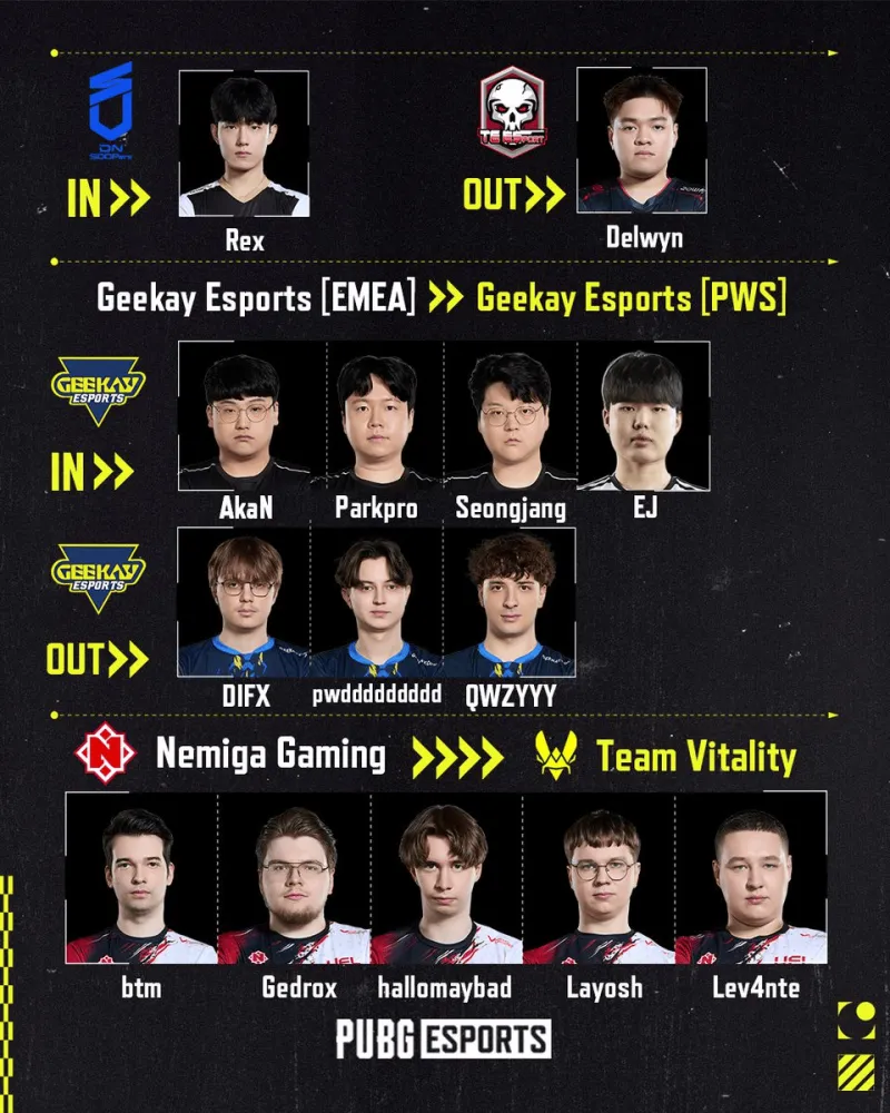 PUBG赛事官方社媒更新:重要转会汇总